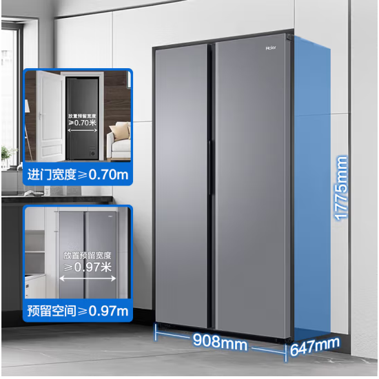 海尔24年新款 541升对开门两门冰箱 大容量风冷无霜 一级家用电冰箱 BCD-541WGHSSEDG7丝缎灰黑金净化