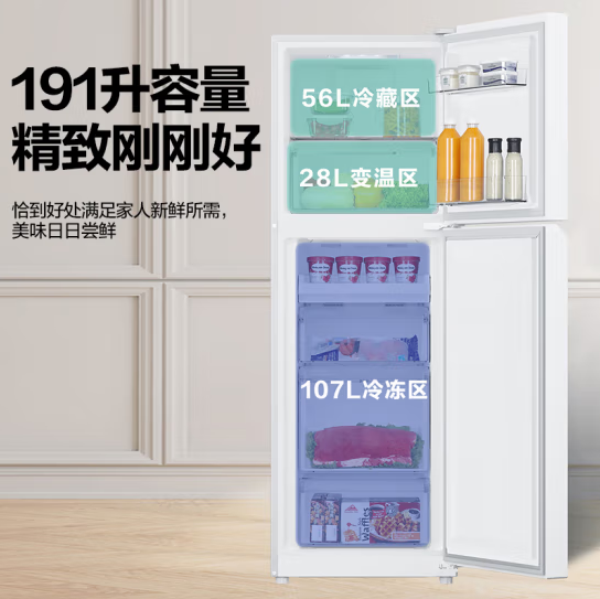 海尔(Haier)【旗舰新品】191升大冷冻风冷无霜净味除菌独立变温区电冰箱 BCD-191WGHC2Z0G1