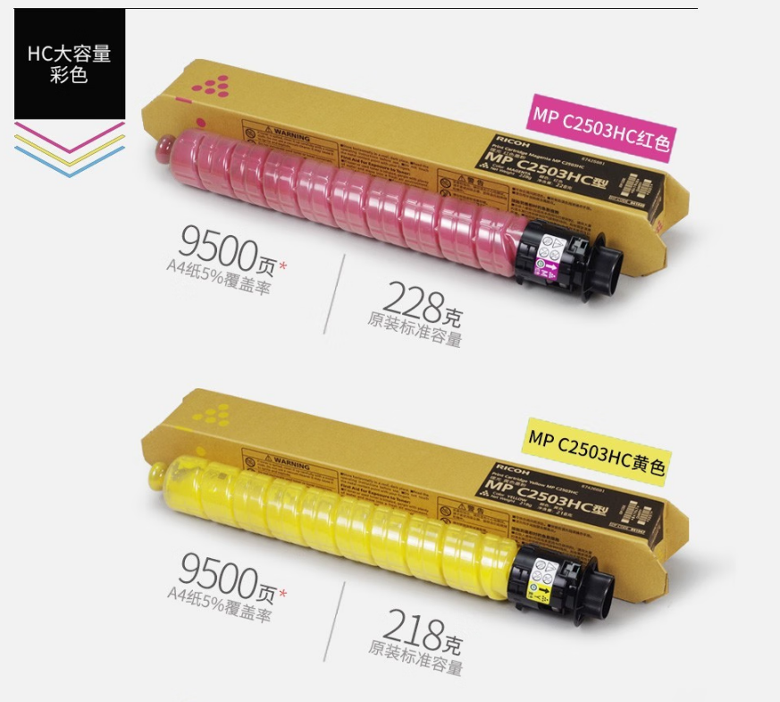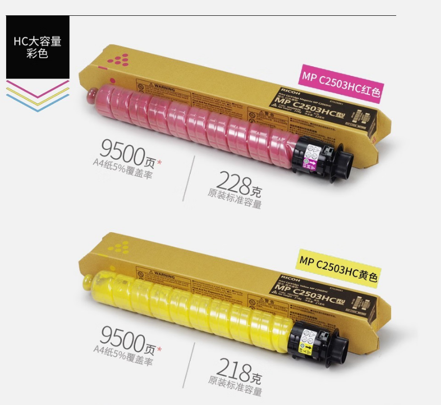 理光 MP C2503HC型黄色大容量粉盒(218g)