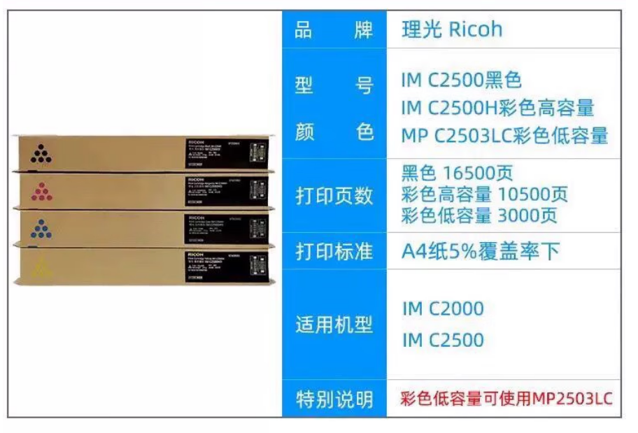 理光MP C2503C型黑色粉盒大容量 (285g)