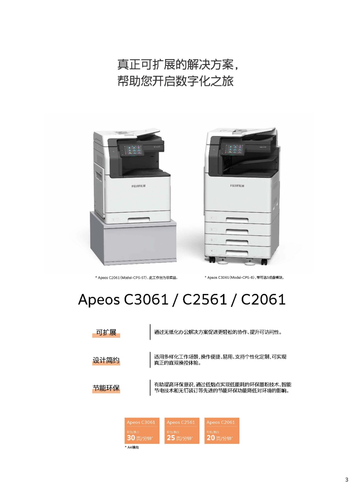 商品品牌:彩色激光复印机 富士胶片/FUJIFILM Apeos C3061 彩色 双纸盒 第三方工作台