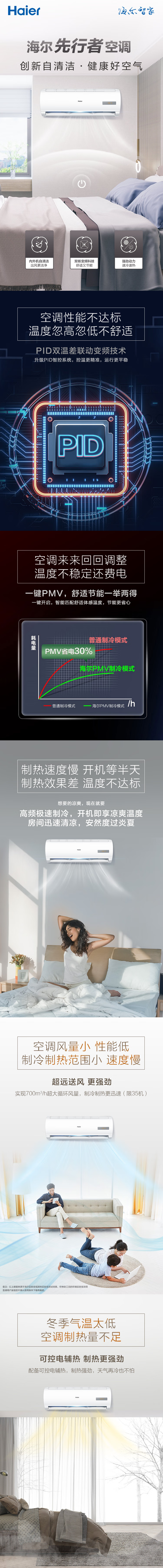 商品品牌:海尔(Haier)1.5P空调挂机 变频新一级能效 壁挂式快速冷暖内外机自清洁 KFR-35GW/B0MCA81