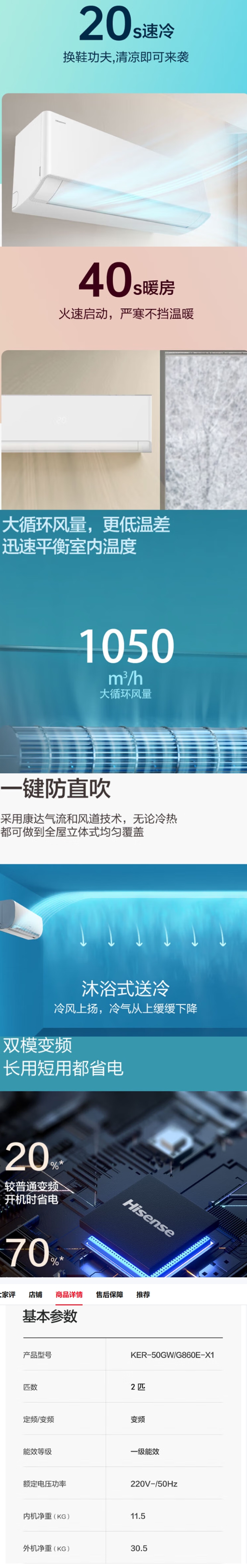 商品品牌:海信(Hisense)2匹 冷暖变频空调挂机 一级能效 KFR-50GW/G860E-X1